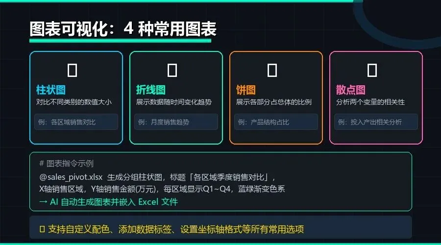 ▲ 4 种常用图表,自动生成并嵌入 Excel 文件