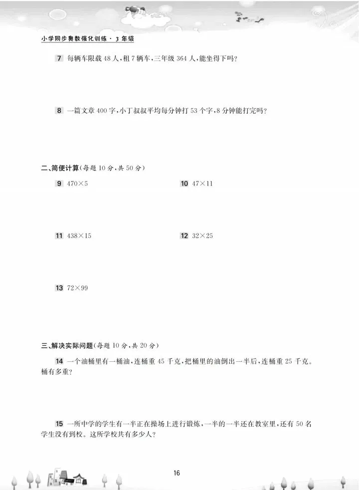 今日份分享三年级数学奥数题强化训练(完整电子版可打印)!这份资料已经整理成可打印版本,方便孩子随时翻看学习,建议家长先收藏,再转发给身边有需要的家庭,一起帮助孩子高效学习~