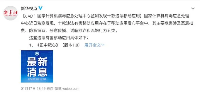 小心!国家计算机病毒应急处理中心监测发现十款违法移动应用!