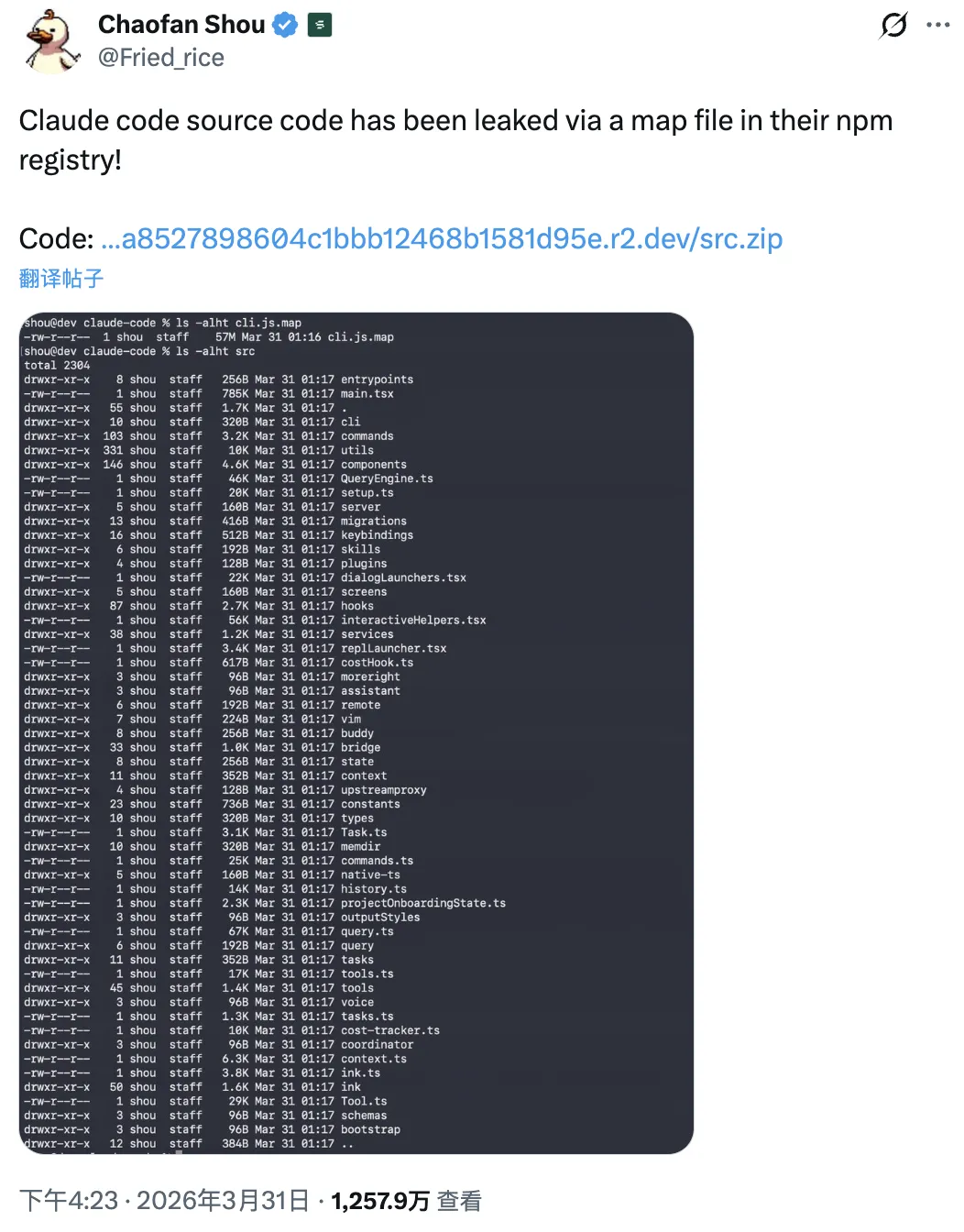 2、Anthropic因打包低级失误引发大规模代码泄露,Claude Code超51万行源码曝光