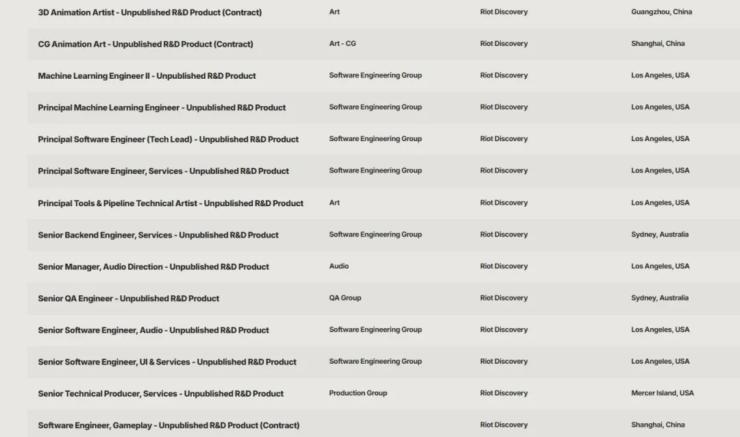 4、拳头游戏全新项目Riot Discovery曝光,招聘信息引玩法猜测
