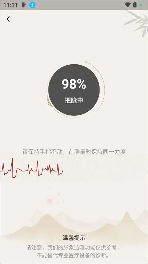 知源把脉养生App是一款融合传统中医智慧与现代科技的创新健康管理应用。它通过智能手机、手表传感器或指尖测量,利用先进的人工智能算法实时采集并分析用户脉象数据,精准识别弦脉、滑脉等28种常见脉象,生成可视化动态报告。