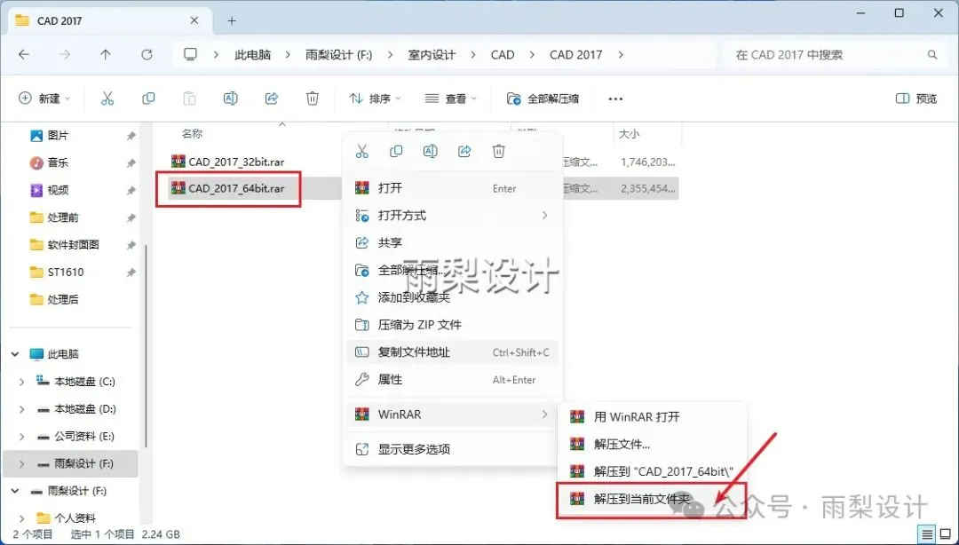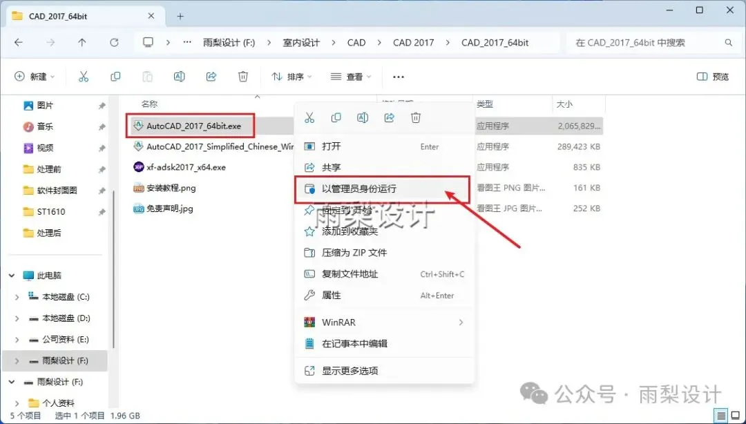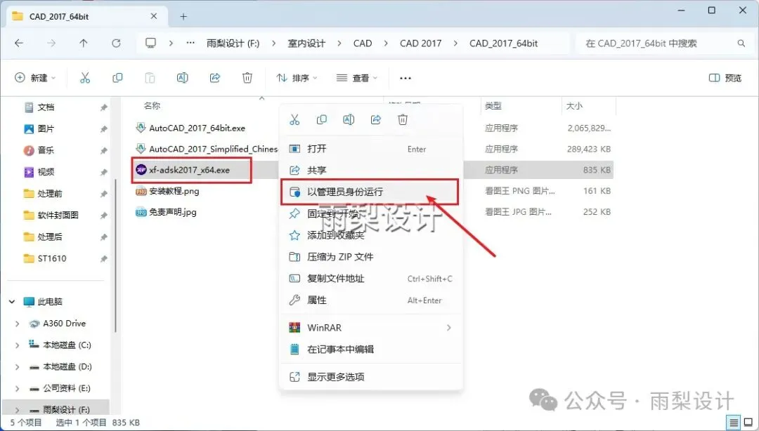 2.右键【CAD_2017_64bit.exe】选择【以管理员身份运行】