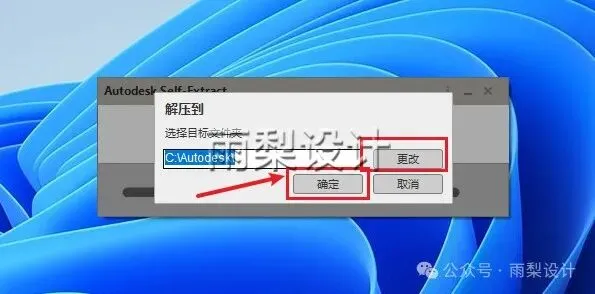 3.选择解压目录,如需更改点【更改】,不需要点【确定】(安装完可删除)