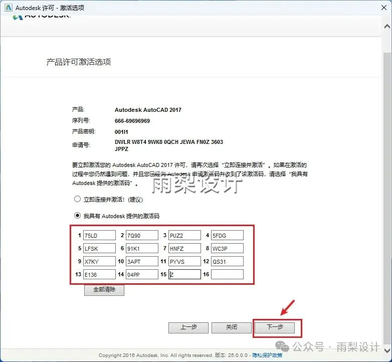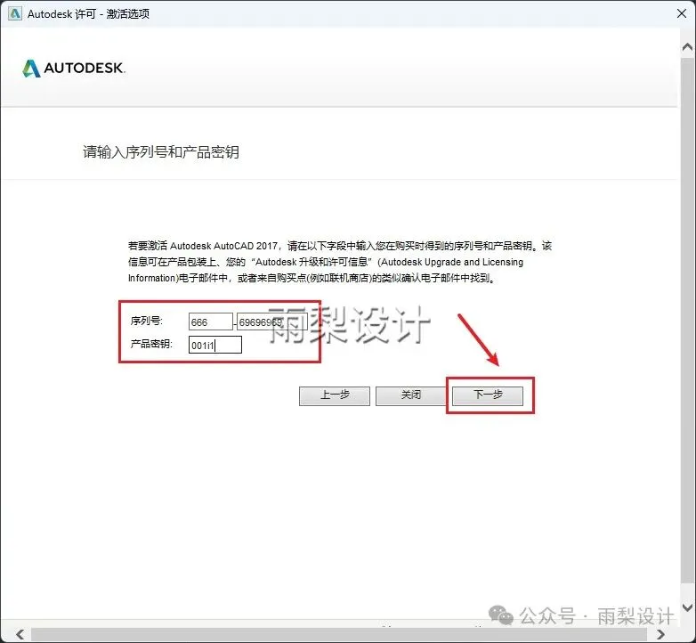 16.输入序列号【666-69696969】 密钥【001i1】;点击【下一步】