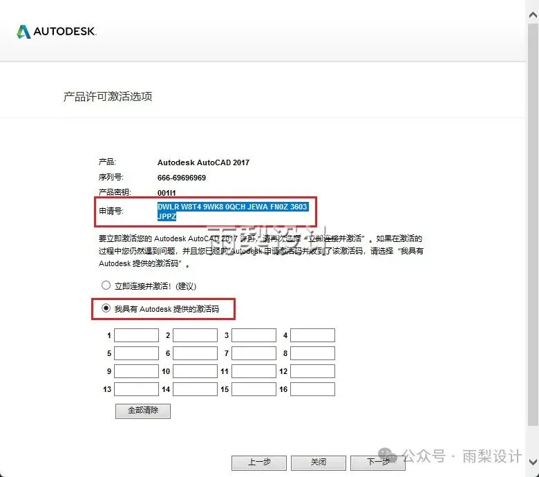18.复制【申请号】;并且选择【我具有激活码选项】