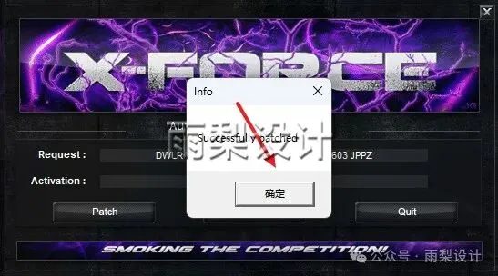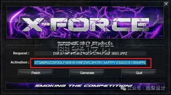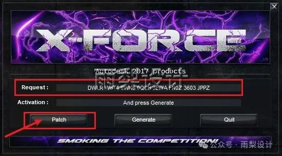 20.把第18步复制的申请码粘贴到【Request】;点击【Patch】