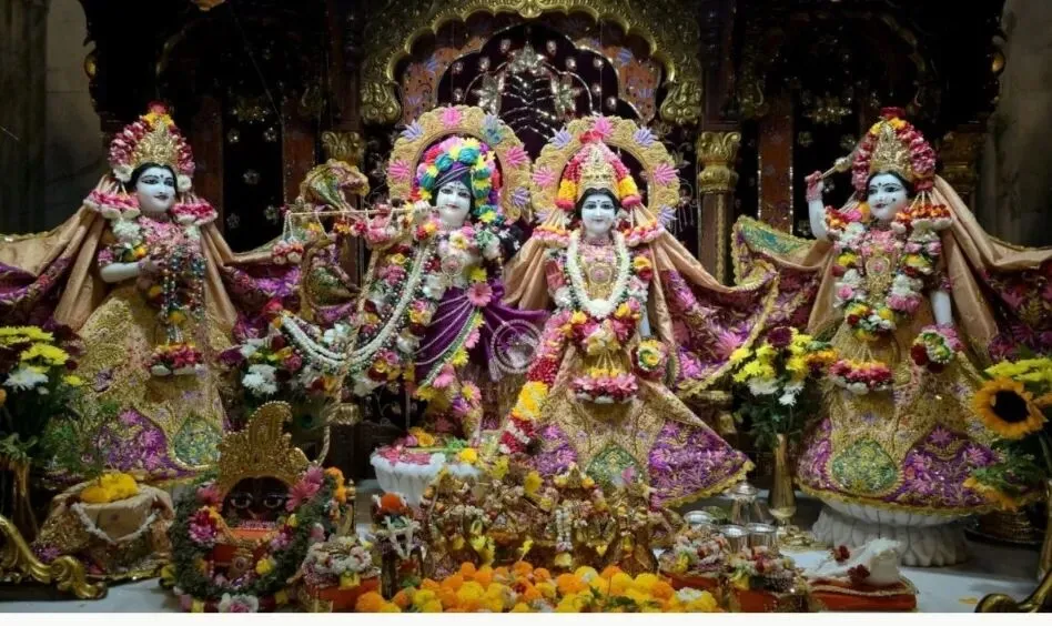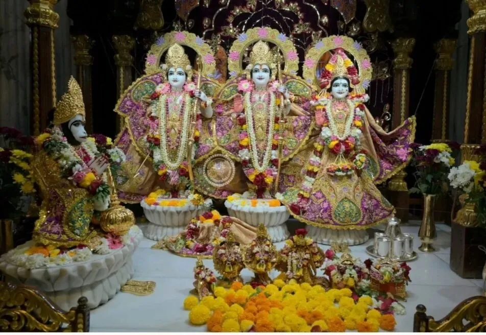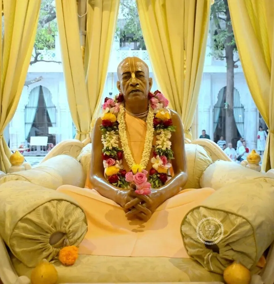首先,我向在他的维亚萨座(vyāsāsana维亚萨阿萨那)上的施瑞拉•帕布帕德(Śrīla Prabhupāda)致以顶拜。然后,我得到了施瑞•施瑞•高茹阿•尼太(Śrī Śrī Gaura Nitāi)、施瑞拉•帕布帕德与施瑞拉•巴克提希丹塔•萨茹阿斯瓦缇•塔库尔(Śrīla Bhaktisiddhānta Sarasvatī Ṭhākura)、施瑞•施瑞•茹阿达•茹阿萨比哈尔依•拉丽塔•维莎卡 (Śrī Śrī Rādhā Rāsabihārī Lalitā Viśākhā)的塔库尔们,以及施瑞•施瑞•悉塔•茹阿玛•拉珂施曼(Śrī Śrī Sītā Rāma Lakṣmaṇa )与哈努曼(Hanumān)塔库尔们的达尔善,并为他们供奉了阿尔提。接着,我们向施瑞•施瑞•帕拉达•尼星哈戴瓦(Śrī Śrī Prahlāda Nṛsiṁhadeva)供奉了灯。最后,我向在他的维亚萨座(vyāsāsana维亚萨阿萨那)上的施瑞拉•帕布帕德供奉了灯。