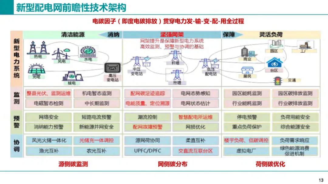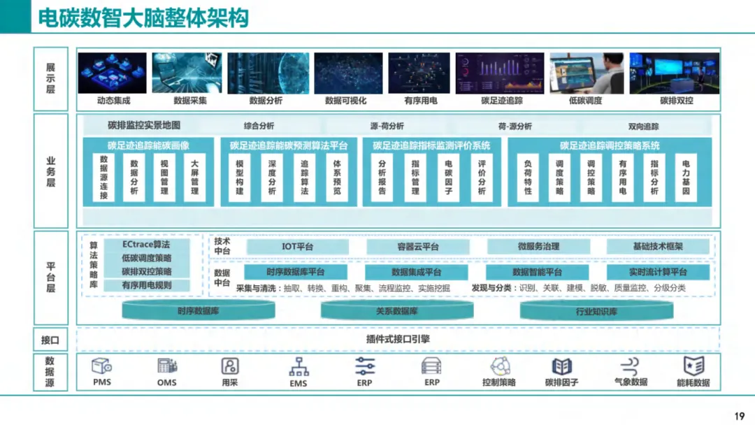 降碳的第一步不是改造,是把底数摸清。我们要把电和碳的数据,从电源到用户全部打通。发电侧看风电、光伏、火电各自发电多少、排碳多少;输电侧看电力经过哪些线路、沿途损耗与间接排碳;配电侧看园区变压器、配电线路产生的碳排放;用户侧看每栋建筑、每条产线、每个充电桩的用电与排碳。