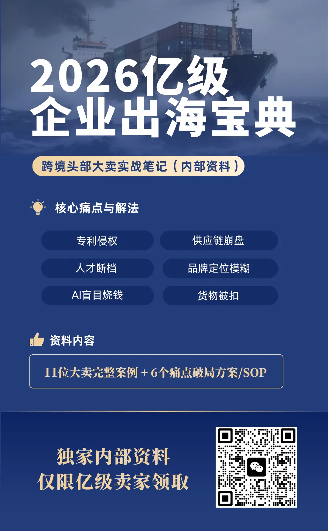扫码添加老高微信,备注“职位+营业额”,即可获取完整版《2026亿级企业出海宝典》(内含11位卖家具体案例、操作细节、以及现场交流的记录)