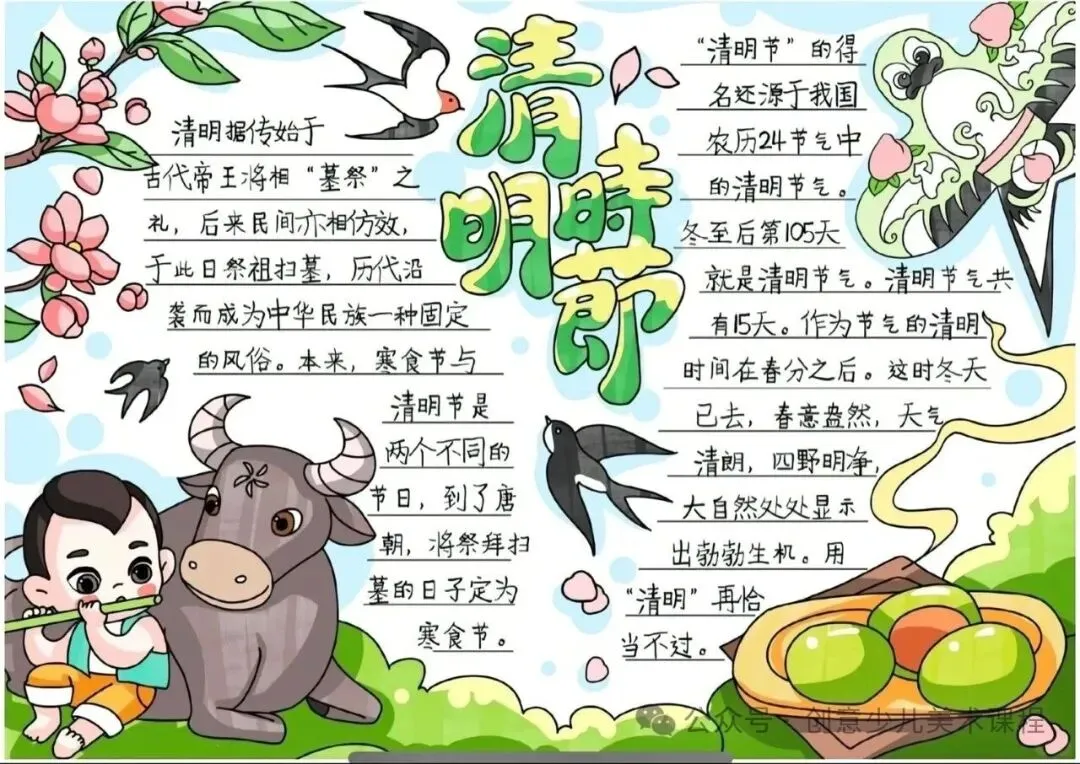 清明节,又称踏青节、行清节、三月节、祭祖节等,在每年4月4日至6日之间,是祭祀、祭祖和扫墓的节日。清明节源自上古时代的祖先信仰与春祭礼俗,兼具自然与人文两大内涵,既是自然节气点,也是传统节日。