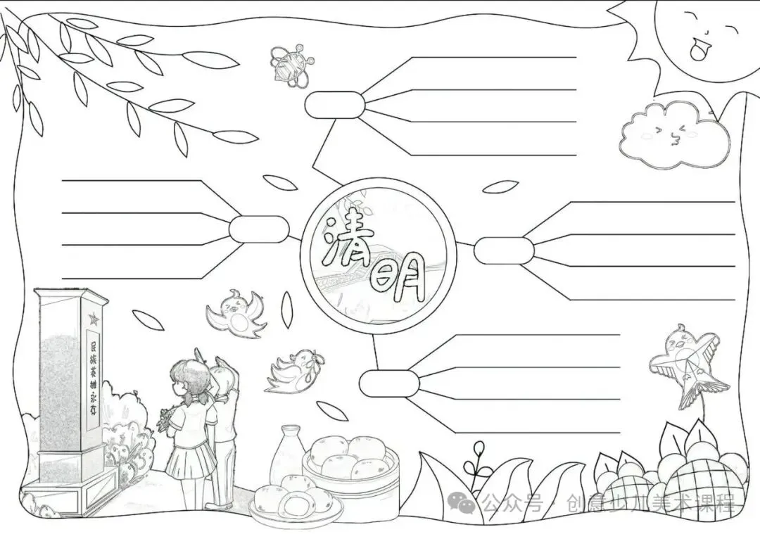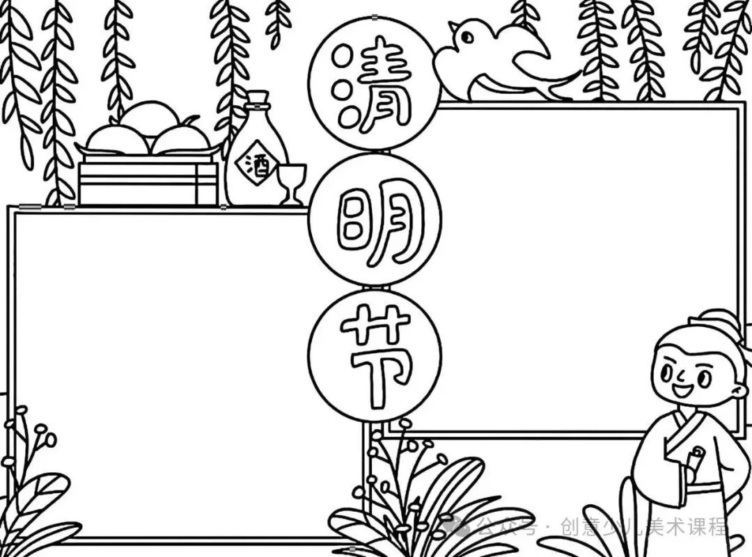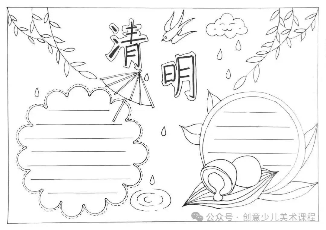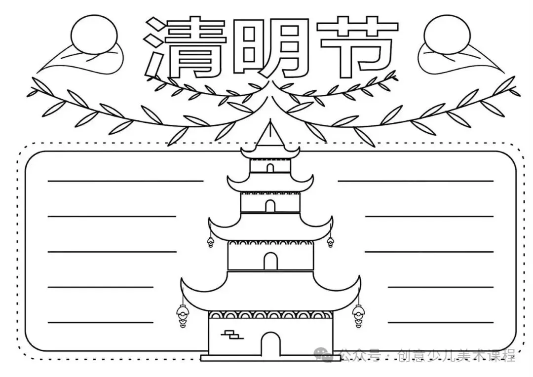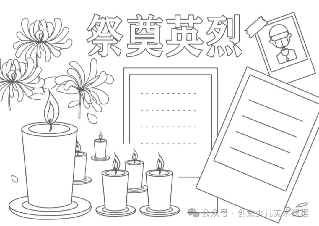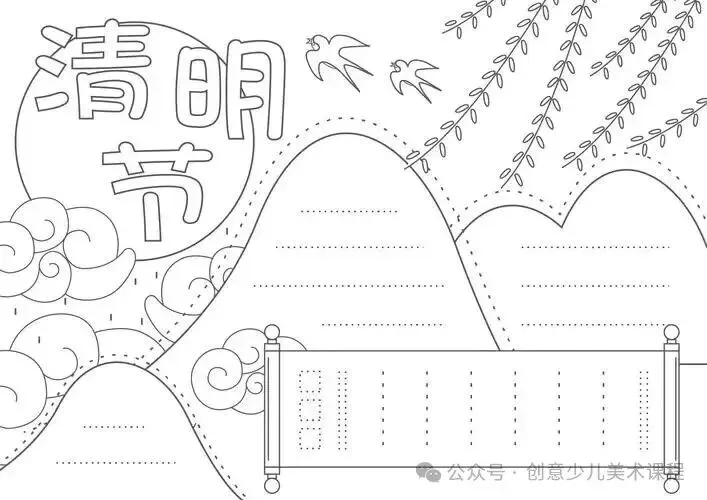 清明节手抄报,黑白线稿,可打印