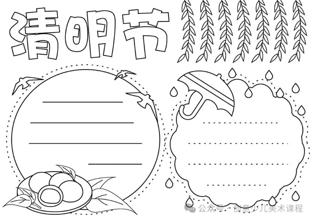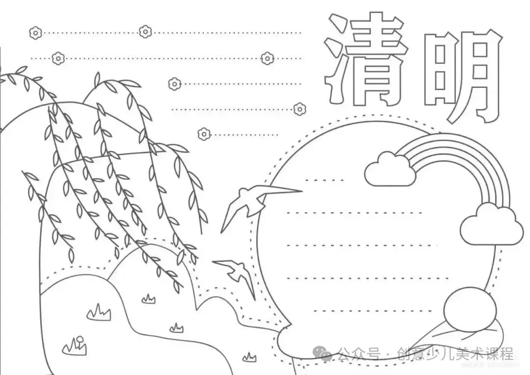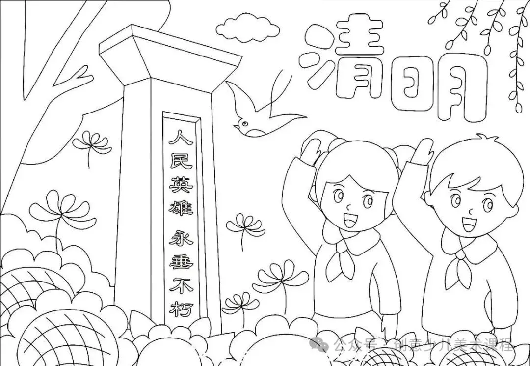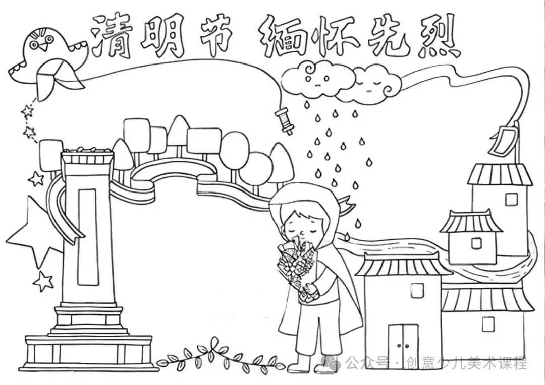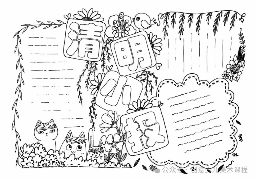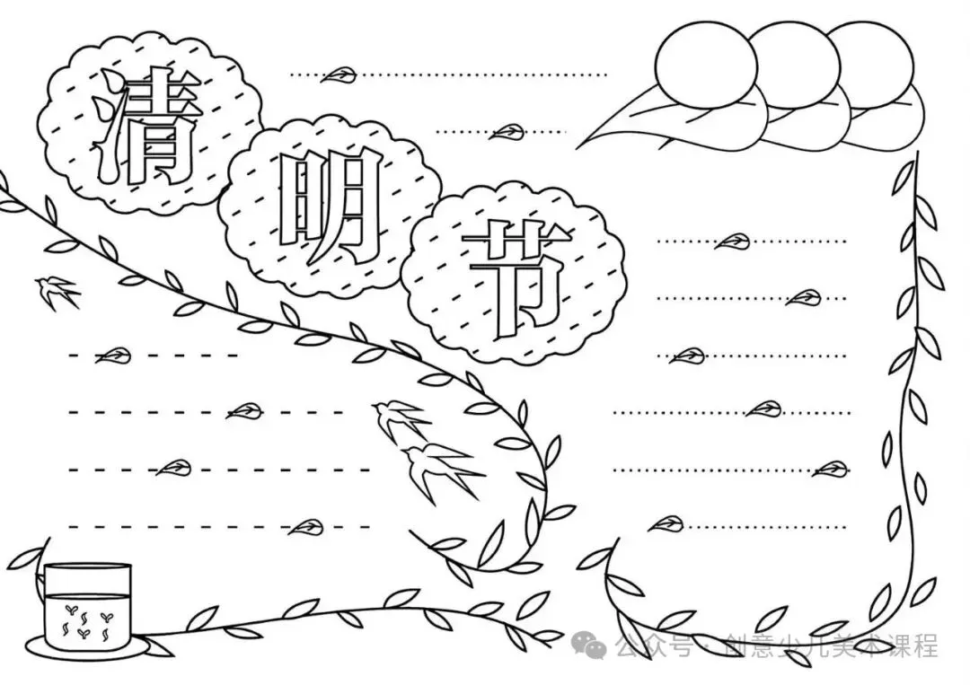 清明节手抄报,黑白线稿,可打印