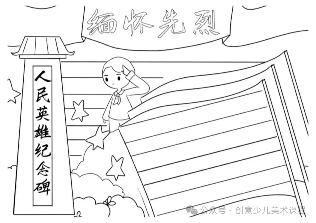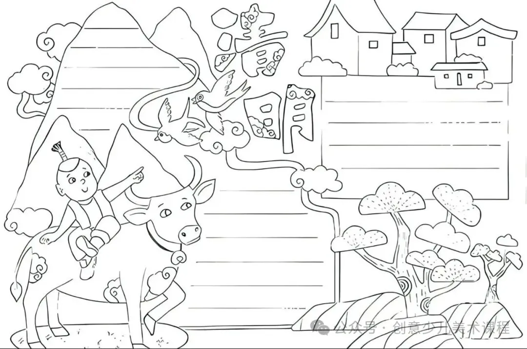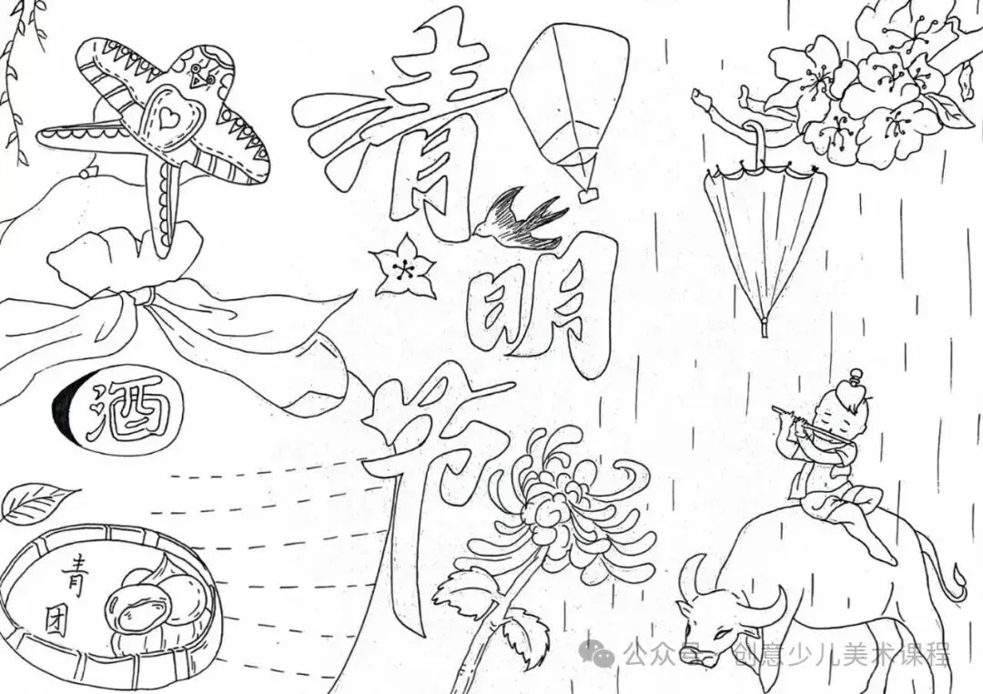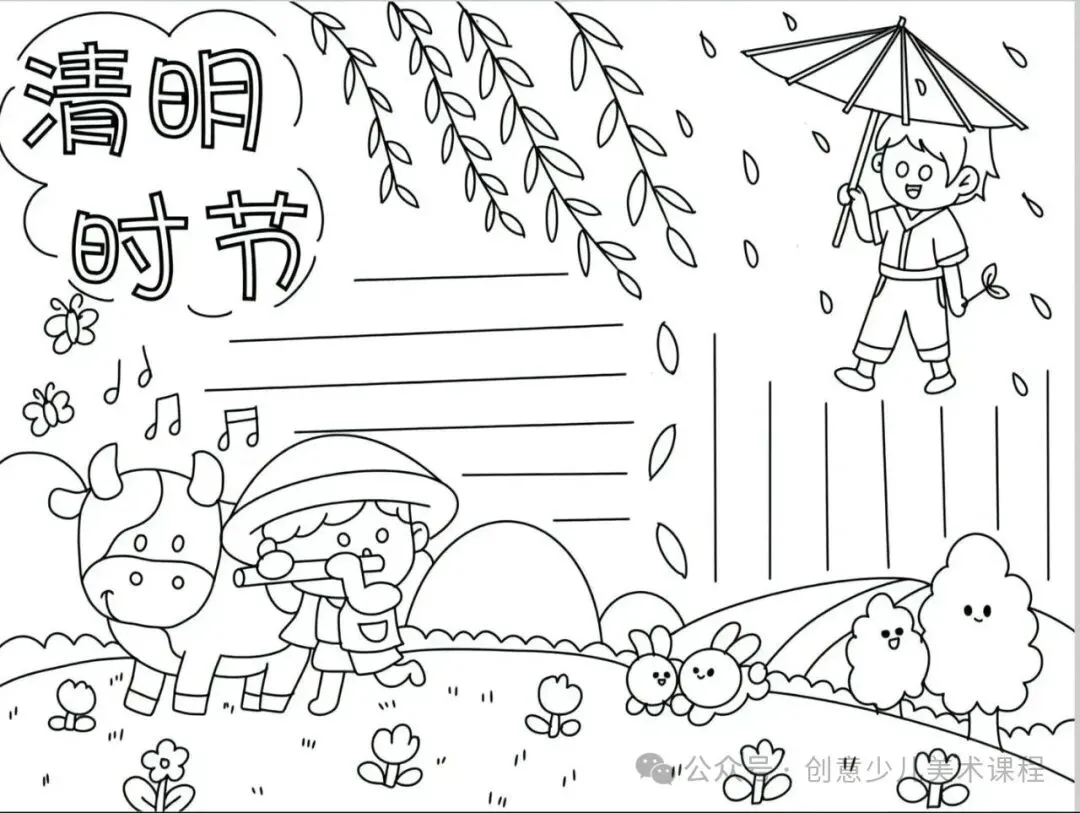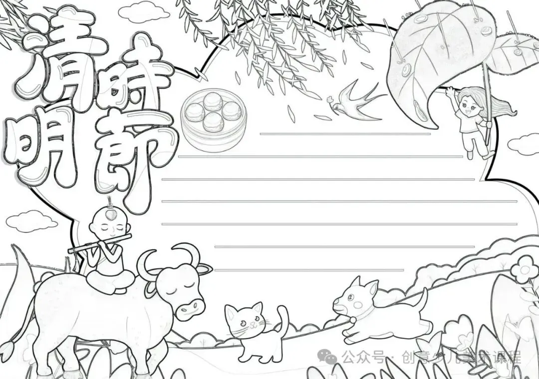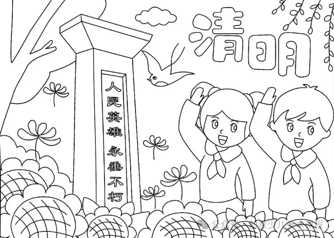 清明节手抄报,黑白线稿,可打印