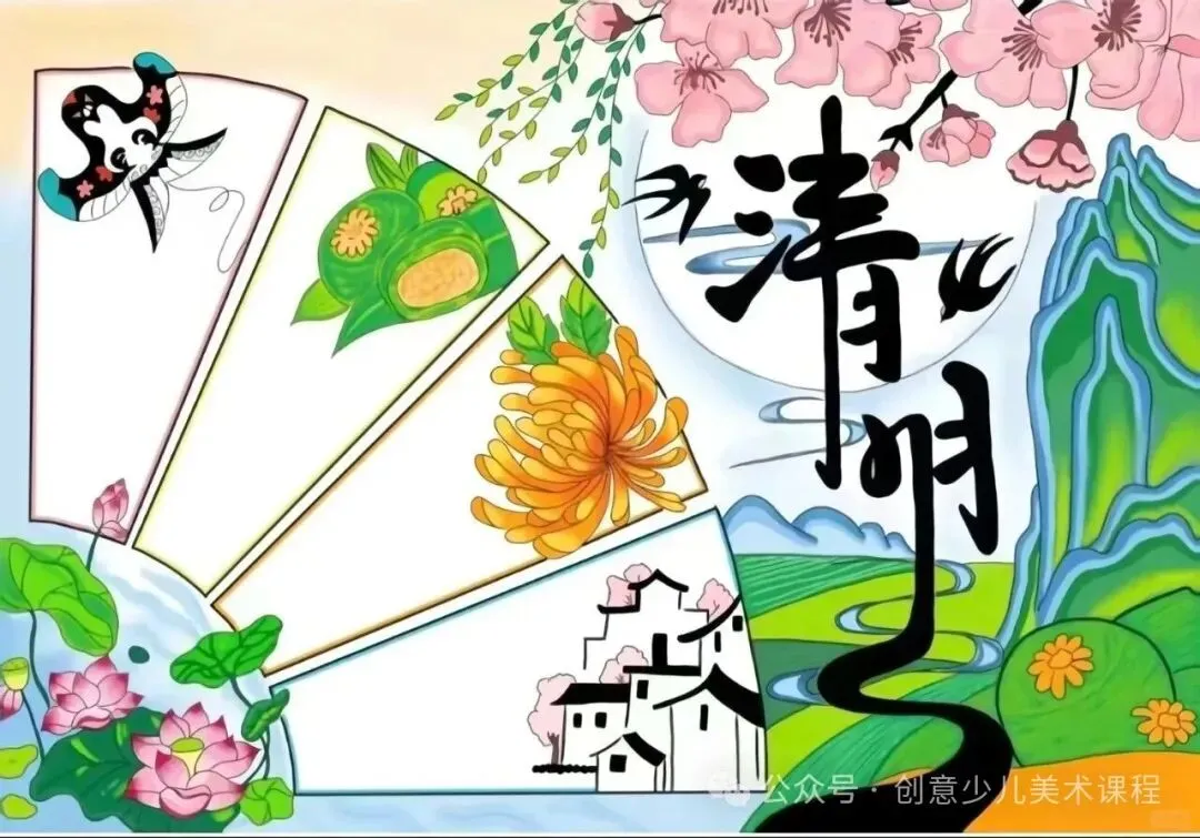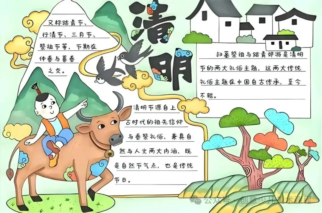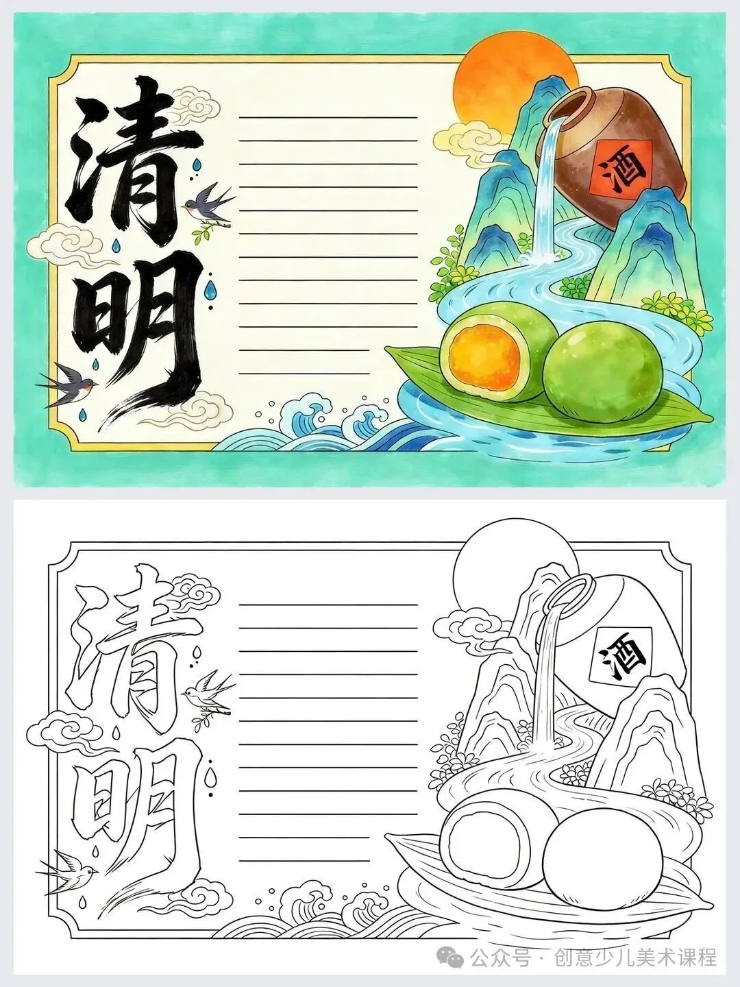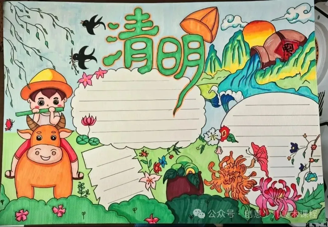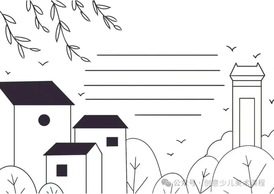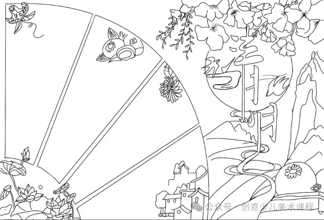 清明节手抄报,黑白线稿,可打印