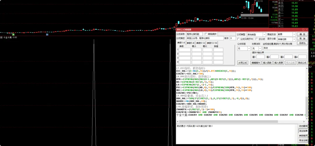 十全十美选股指标源码融合了趋势(均线、布林线)、动能(MACD、KDJ、RSI)、资金(OBV、量能)及强弱(CCI、DMI)四大维度的十大核心技术指标。只有当这十个维度的信号在同一时刻全部满足时,公式才会触发信号。这是一种极度保守但高胜率的筛选逻辑,旨在过滤掉市场中绝大多数的噪音与假突破,力求在资金、情绪与趋势产生最大公约数共振的瞬间介入,实现不见兔子不撒鹰的精准打击。