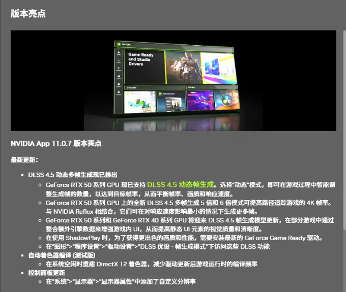 想要启动所有功能,必须使用 GeForce Game Ready 驱动 595.79 WHQL 或并升级至 NVIDIA App 最新测试版才能使用。
