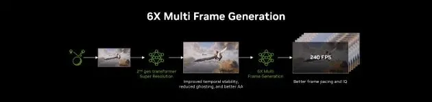 此外,DLSS 4.5 多帧生成功能现已推出,最高可提升至原来的6倍,从而实现更高水平的性能。用户可以在不同游戏中开启 DLSS 4.5 多帧生成或帧生成功能,激活全新优化的 AI 模型。