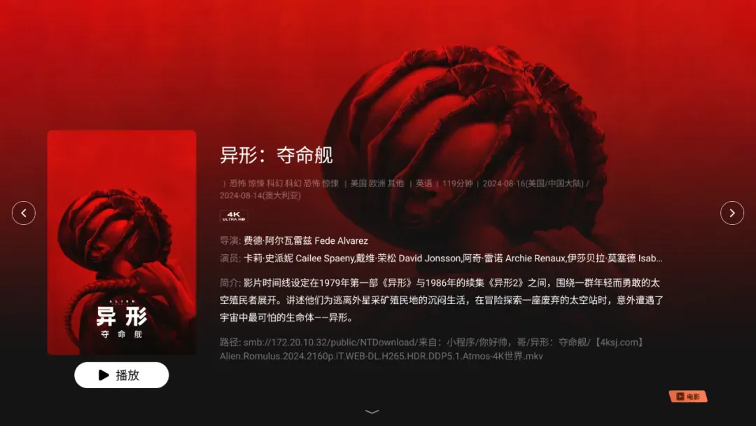 6、在海报墙页面点击电影海报,可以展开详细的影片信息,再按确认便可以播放该影片了,如需蓝光导航请选择“ BD”标签播放。