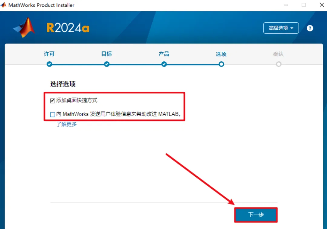 10.勾选第一项【添加桌面快捷方式】,第二项不要勾选,点击【下一步】。