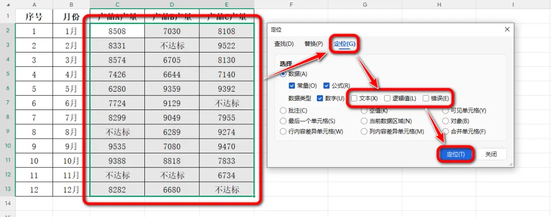 分别取消「文本」、「逻辑值」、「错误」前的对勾。