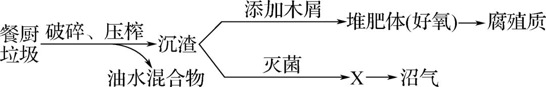 8. (2023·重庆卷)垃圾分类有利于变废为宝,减少环境污染。如图为分类后餐厨垃圾资源化处理的流程设计。下列叙述错误的是(D)