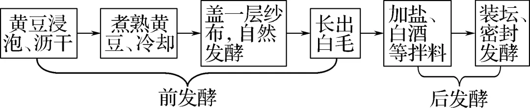 9. (2025·南通如东期初)豆豉是长江以南地区传统发酵豆制品调味料,参与豆豉发酵的主要微生物为曲霉菌。利用传统发酵技术制作风味豆豉的主要工艺流程如下图。下列叙述错误的是(C)