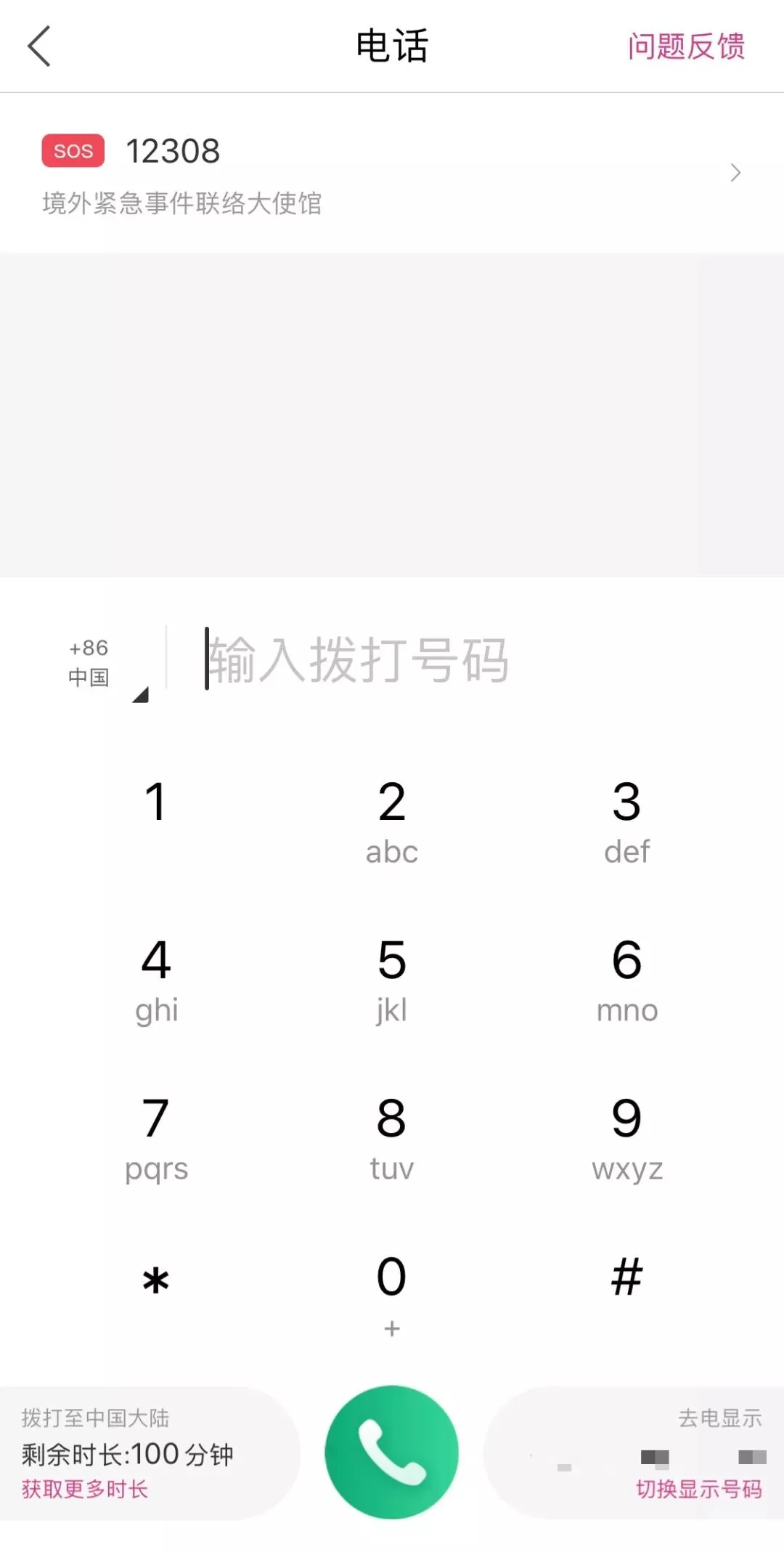 拨打时可以选择显示注册时的号码,即使在国外,亲友们显示的来电也是国内的号码,而拨号盘上方有醒目的外交部应急电话,紧急时可以直接拨打。