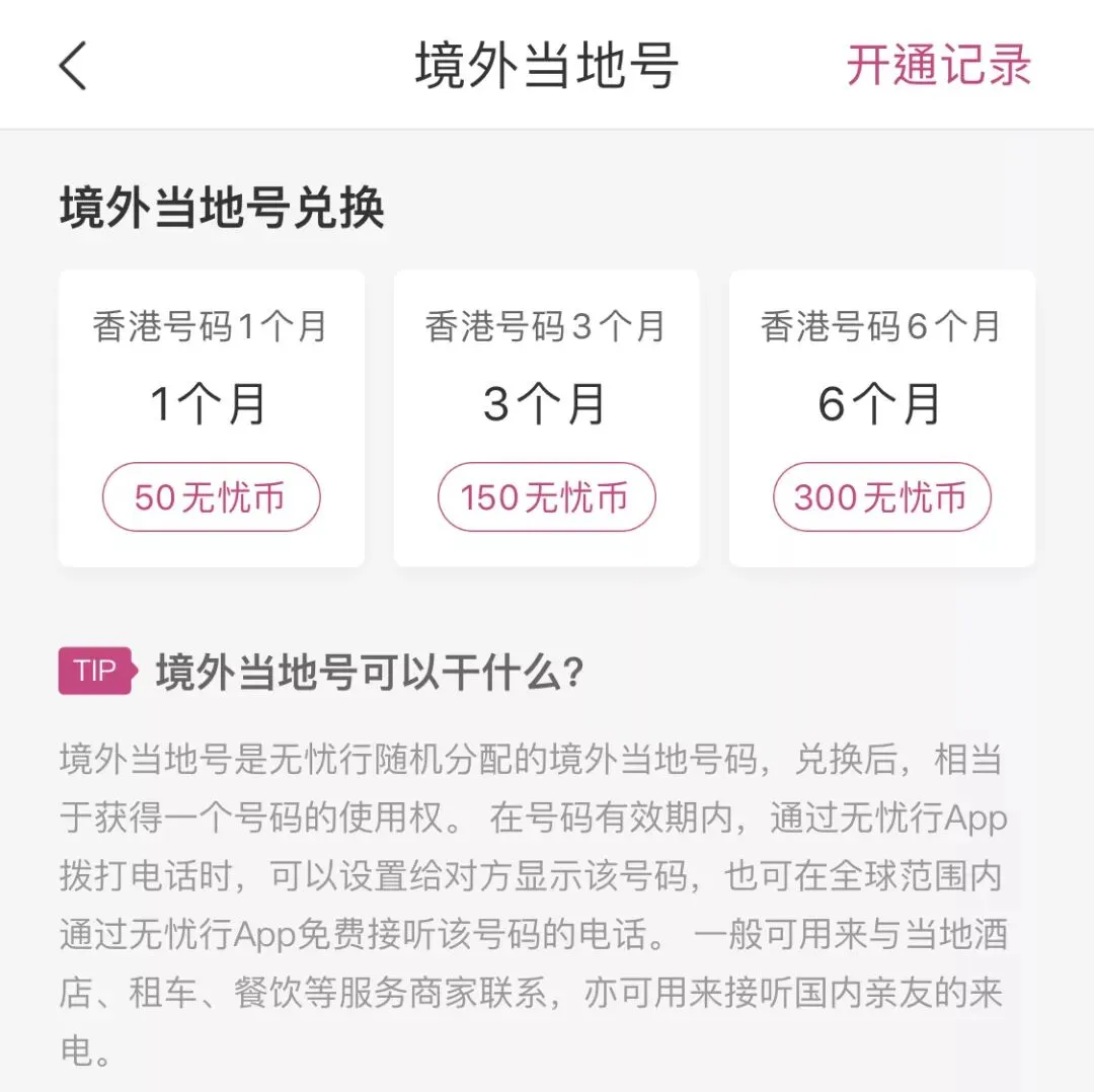 同时为了方便在境外使用,在无忧行App上,还可以购买境外的虚拟号码,方便境外的通讯,不过暂时只能买到香港的号码,将来还会上线其他地区的吧。