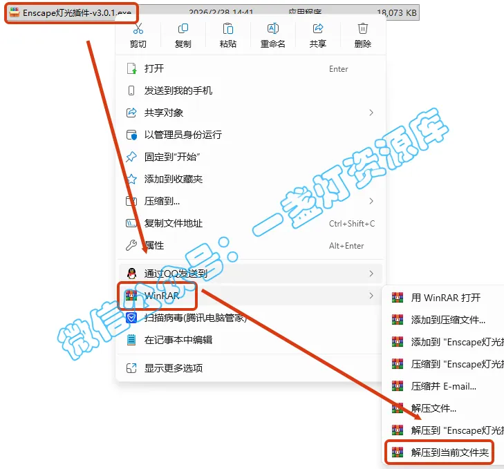 1.选中下载的压缩包,然后鼠标右键选择【解压到当前文件夹】