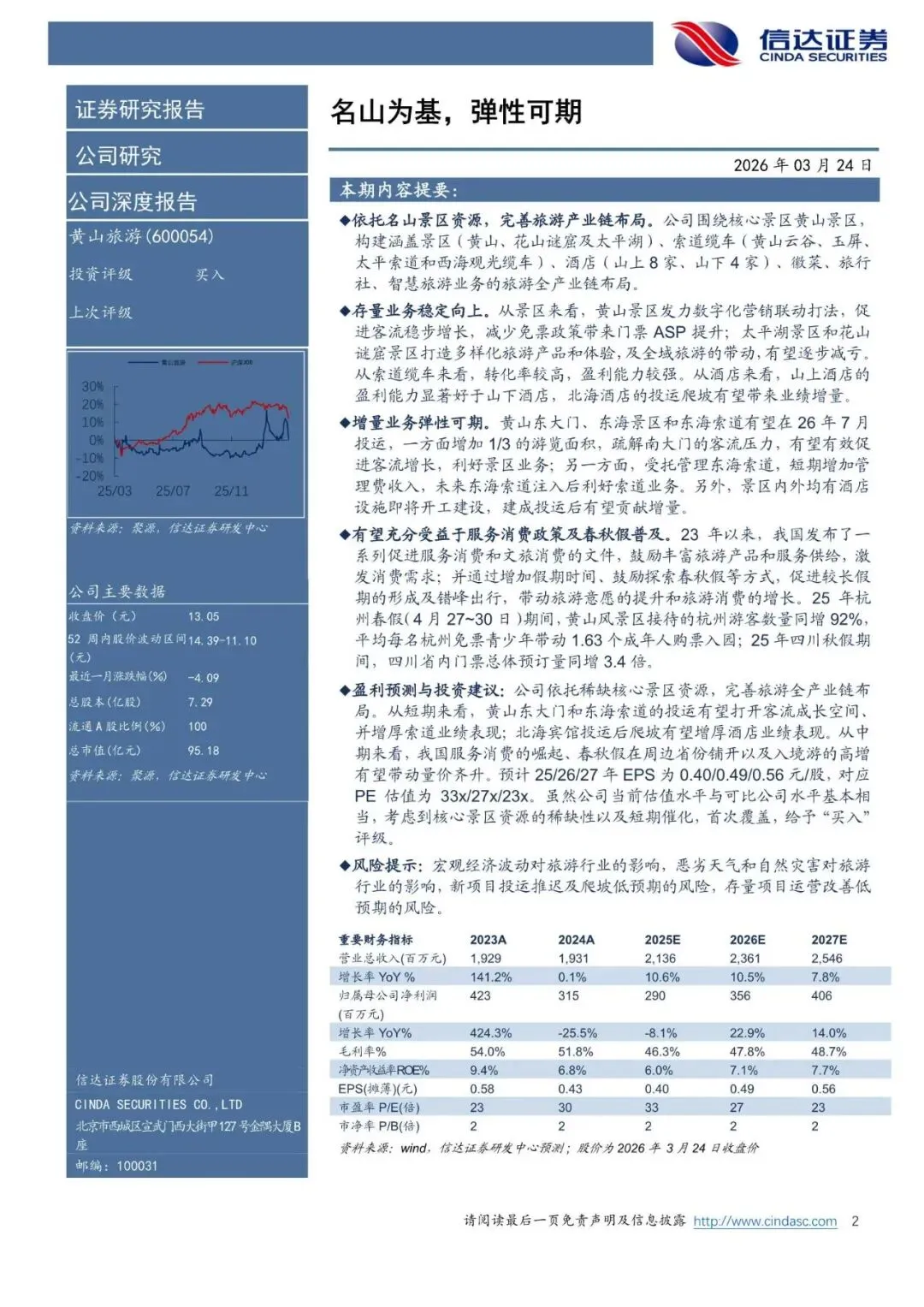 回复暗号:黄山旅游(600054)深度报告:名山为基,弹性可期-260324-信达证券-30页