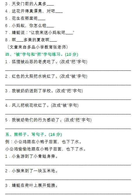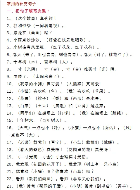 小学语文1-6年级下册《句子专项练习》|可下载打印 点击上方“语数英父母学堂”↑↑↑关注我 版面有限,不过多展示 需要直接拉至文末下载 完整电子打印版免费领取方式 ▲点击上方 语数英父母学堂 在公众号消息框发送: 5379,即可免费领取