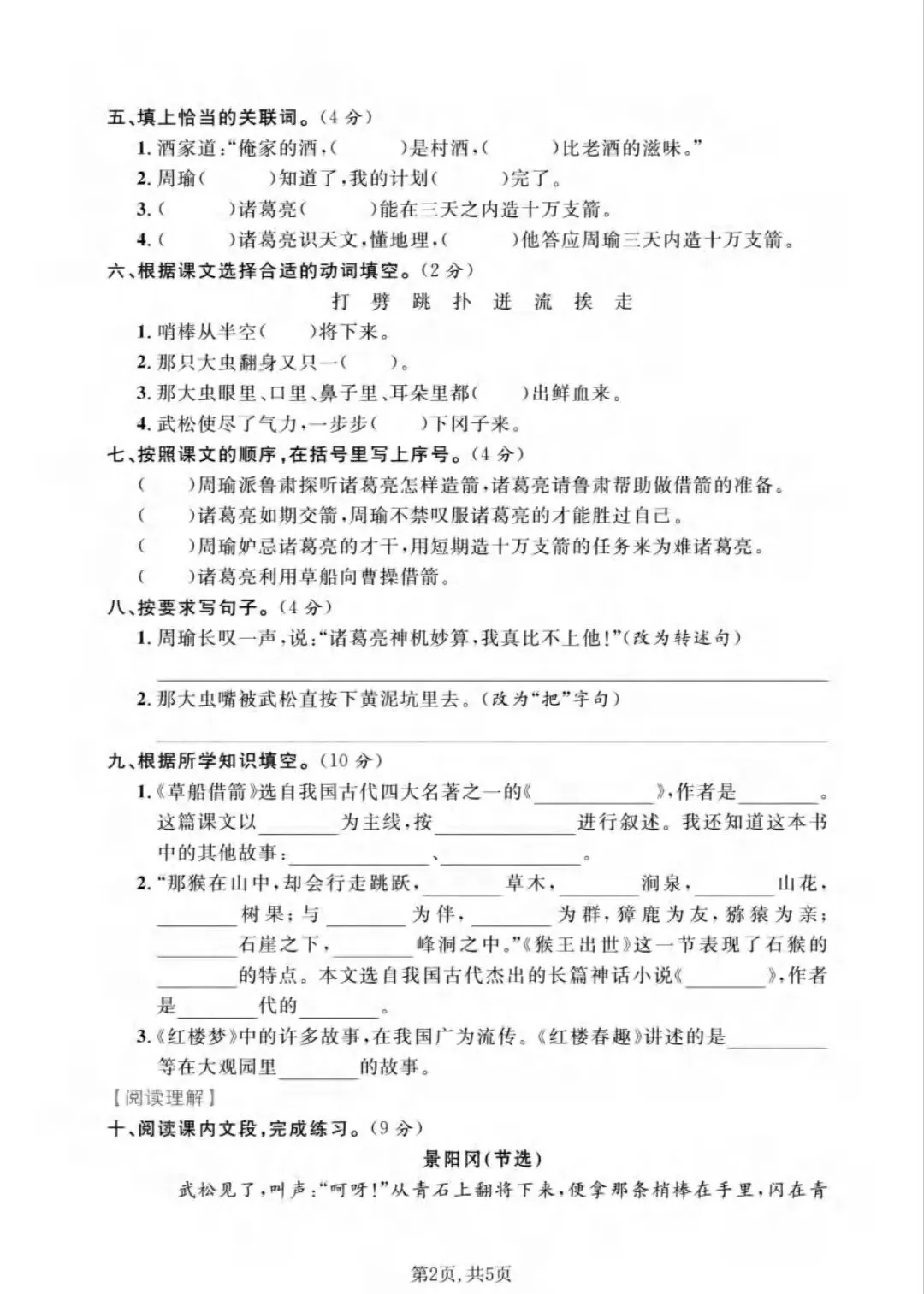 部编版五年级语文下册第二单元检测卷(可打印) 以下是部编版五年级语文下册第二单元检测卷,包含参考答案!若需PDF完整版请私聊客服! 为防止错过“JJ语文备课室”的推送,请【星标】或文末点【分享】【赞】【在看】!谢谢!