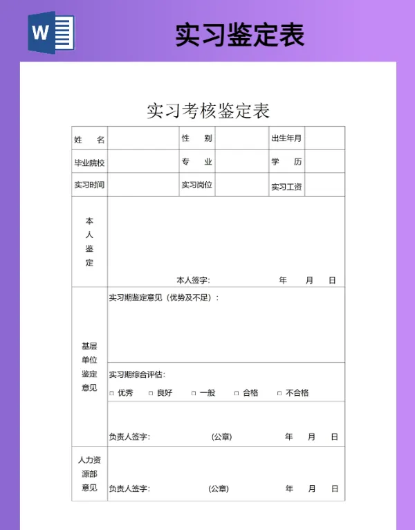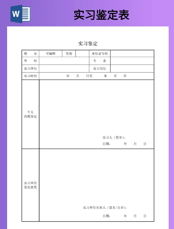 2026年毕业实习鉴定表模板word电子版下载【免费分享】 本文分享:毕业实习鉴定表模板合集 下载后办公软件可直接编辑修改打印 网盘打包下载链接👇 https://pan.quark.cn/s/8e0cc3229f71 #实习手册模板 #实习鉴定表填写 以下是部分预览图下载 以上仅为部分预览图 点击阅读原文,可直接下载