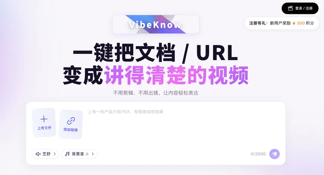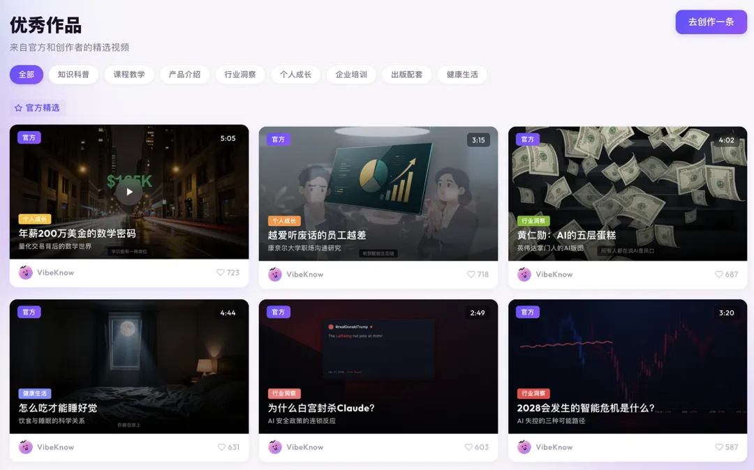 今天给大家挖到一个全球首创的王炸工具——VibeKnow,直接把知识视频创作带入AI全自动时代!