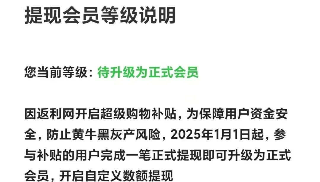 这个高额返利其实是有返利app补贴的30元,不是纯粹的返利,返利依然是只有十几元。坑点所在,这个补贴的钱提现需要门槛,或者放弃补贴才能拿到自己属于自己的返利。官方给的说法也很冠冕堂皇:防黄牛,防灰产。