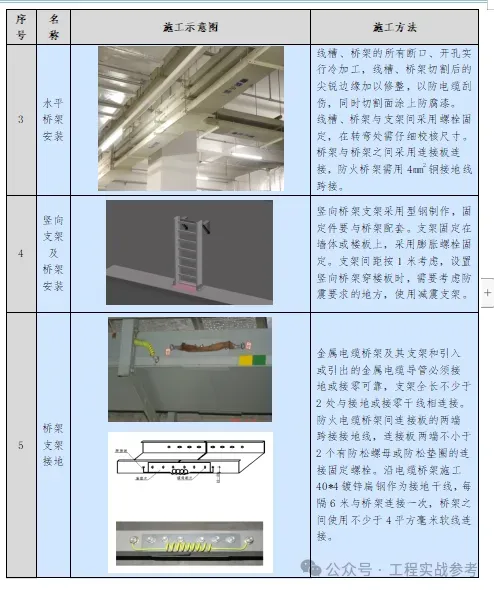 5、交联聚乙烯绝缘、聚烯烃护套无卤低烟B1级阻燃电缆等电缆敷设施工方法及技术措施见表6.4.2-3。
