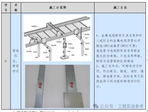 1)本工程电缆电缆托盘、电缆槽盒、金属线槽、电缆梯架均采用冷轧钢板制作。变配电室出线、电气竖井内、矿物绝缘电缆选用热镀锌钢制梯型桥架,防火槽式桥架用于消防工程、弱电使用,本工程为了更好的区分各桥架的使用功能,将不同类型的桥架采用不同颜色进行区分。