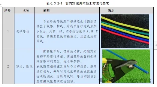 电气施工范围内动力配电系统、照明系统、疏散指示等系统的进出线回路均需进行管内穿线施工操作。