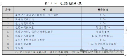 电缆在电缆沟及桥架内波形敷设,最少预留长度见表6.4.2-1。