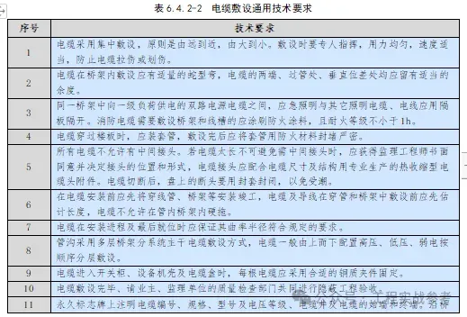 本工程电缆数量多,施工区域平面范围广,电缆施工主要选择人力敷设和机械敷设相结合的方式进行。其通用技术要求见表6.4.2-2。