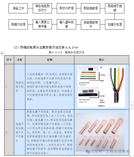 交联聚乙烯绝缘、聚烯烃护套无卤低烟B1级阻燃电缆等电缆头制作采用热缩套管进行末端处理,电缆头通过压接铜线鼻子方式实现与开关柜和配电箱的接驳。