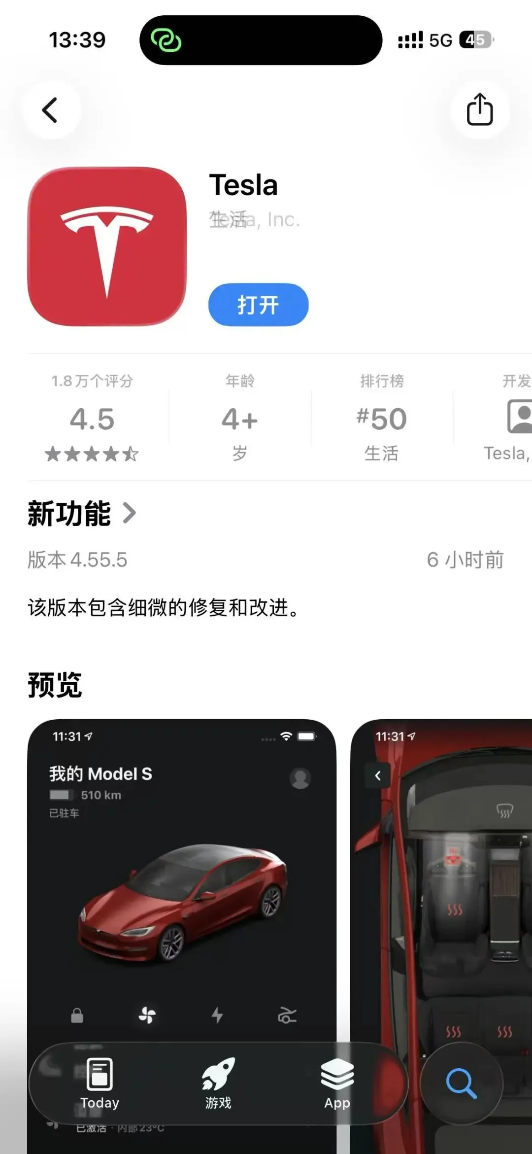 最新消息,特斯拉中国的app再次推送了更新,这次版本号是4.55.5,在应用商店里的更新说明是细微修复,但是根据博主的观察,这次的更新有这几个功能变化