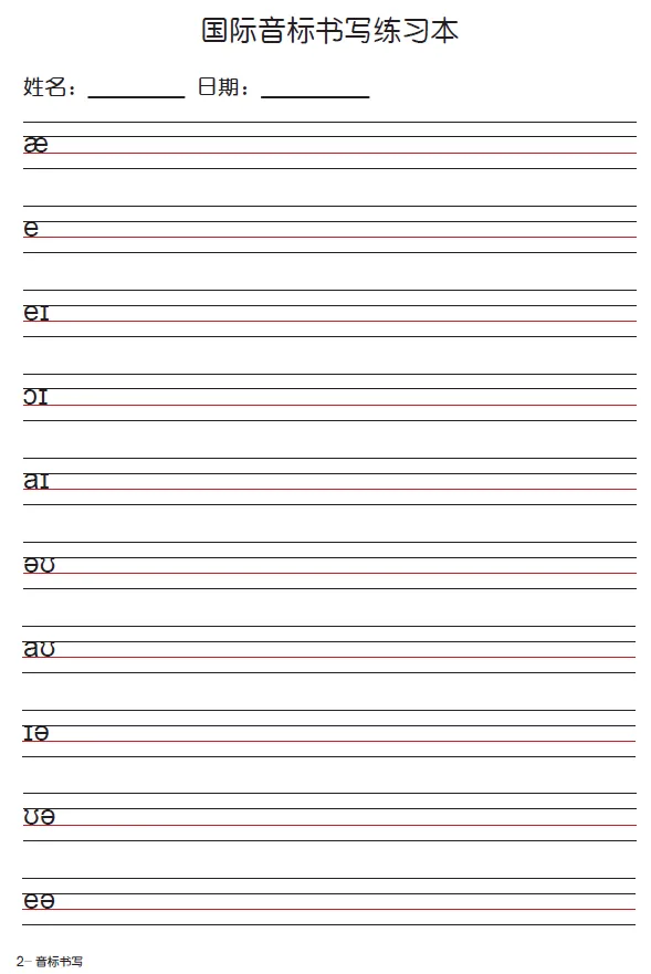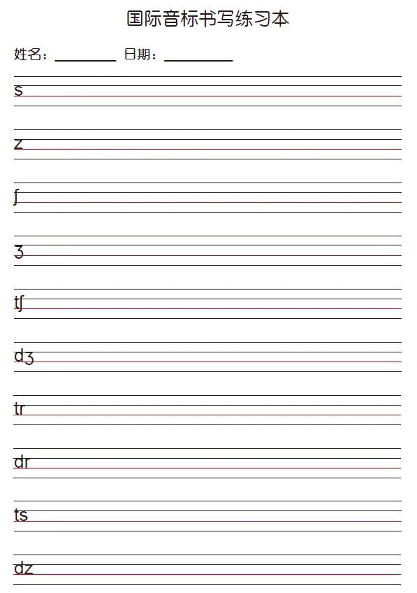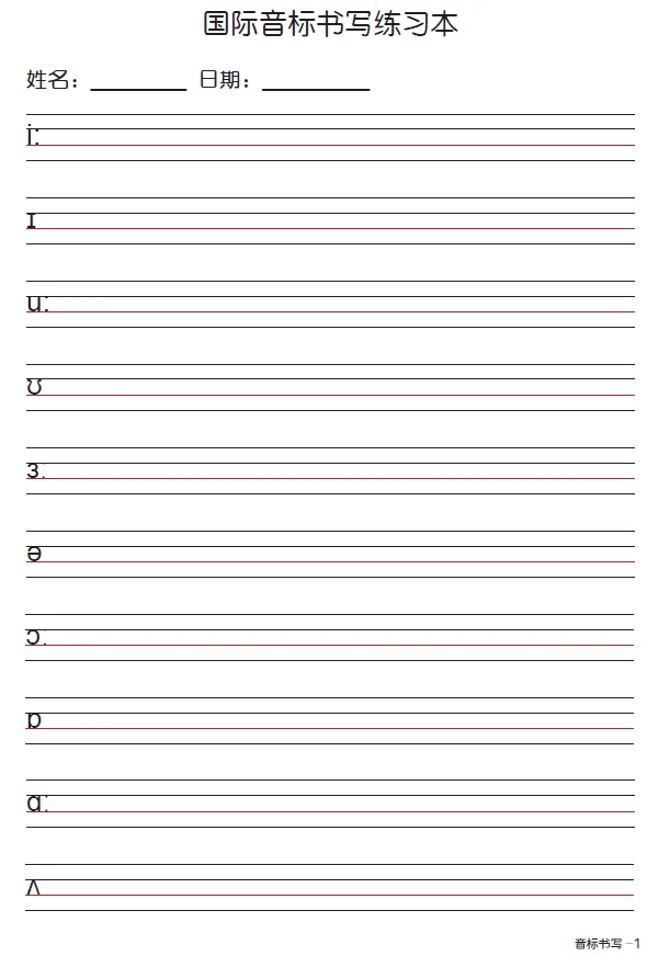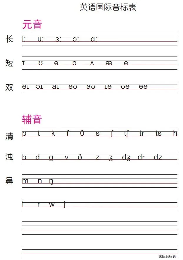 小学英语国际音标书写练习(可直接保存打印)