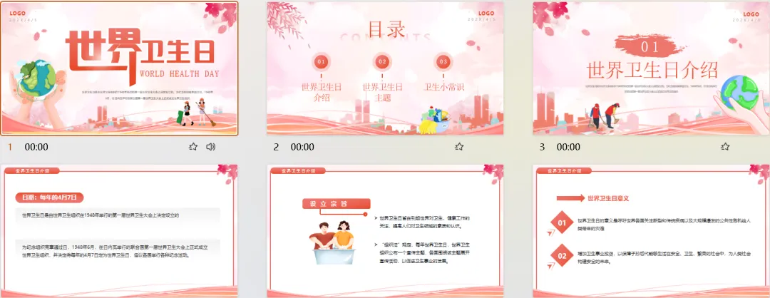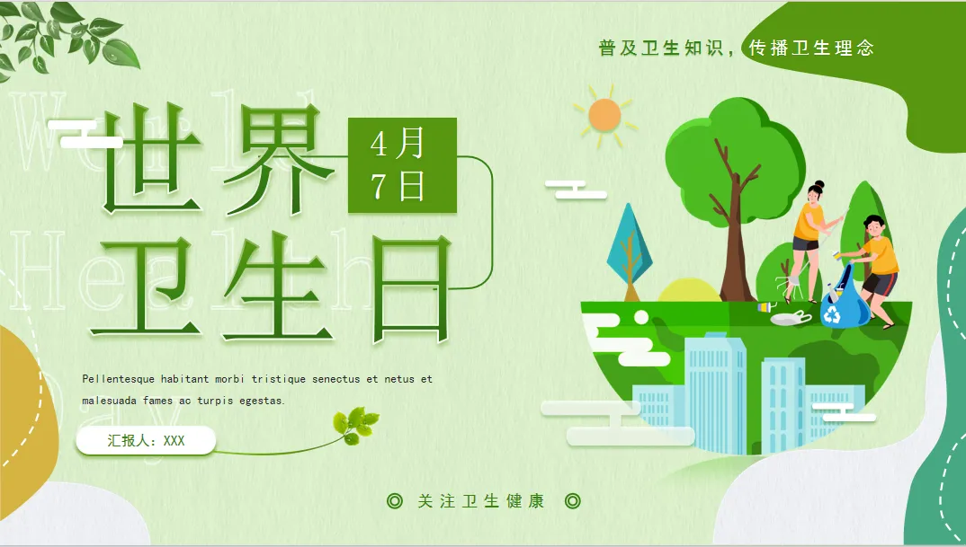 4月7日《世界卫生日ppt模板》电子版,可免费下载编辑