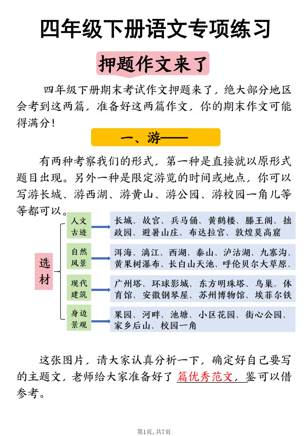 四年级(下)语文 押题范文汇总,PDF电子版,可下载打印