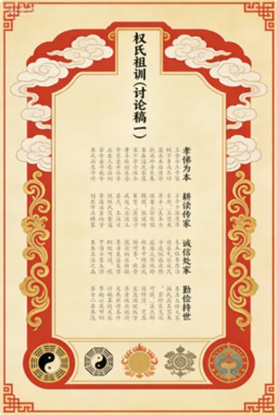 木有本,水有源。权氏一脉,源出子姓,封国于权,郡望天水,千百年来瓜瓞绵延,代有贤良。然世运推移,时移势易,宗族播迁四方,旧有训诫或散佚、或失于系统成文。为追溯共同之精神本源,凝练家族之核心价值,使后世子孙知所从来、明所将往,特汇集族中贤达,稽古考今,编撰此《权氏祖训》。