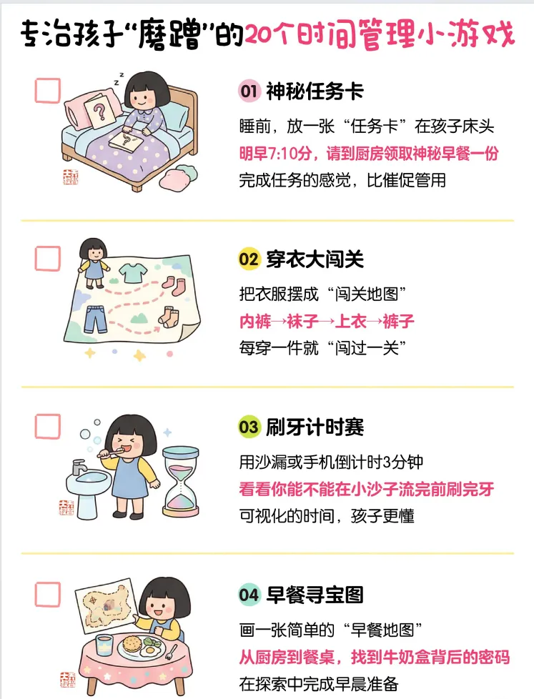领取更多学习资料让孩子告别拖拉,主动规划时间!这份《幼小衔接时间管理游戏》PDF,包含多个趣味游戏,可下载打印。轻松帮孩子建立时间观念,实现自主管理,家长不吼不叫。