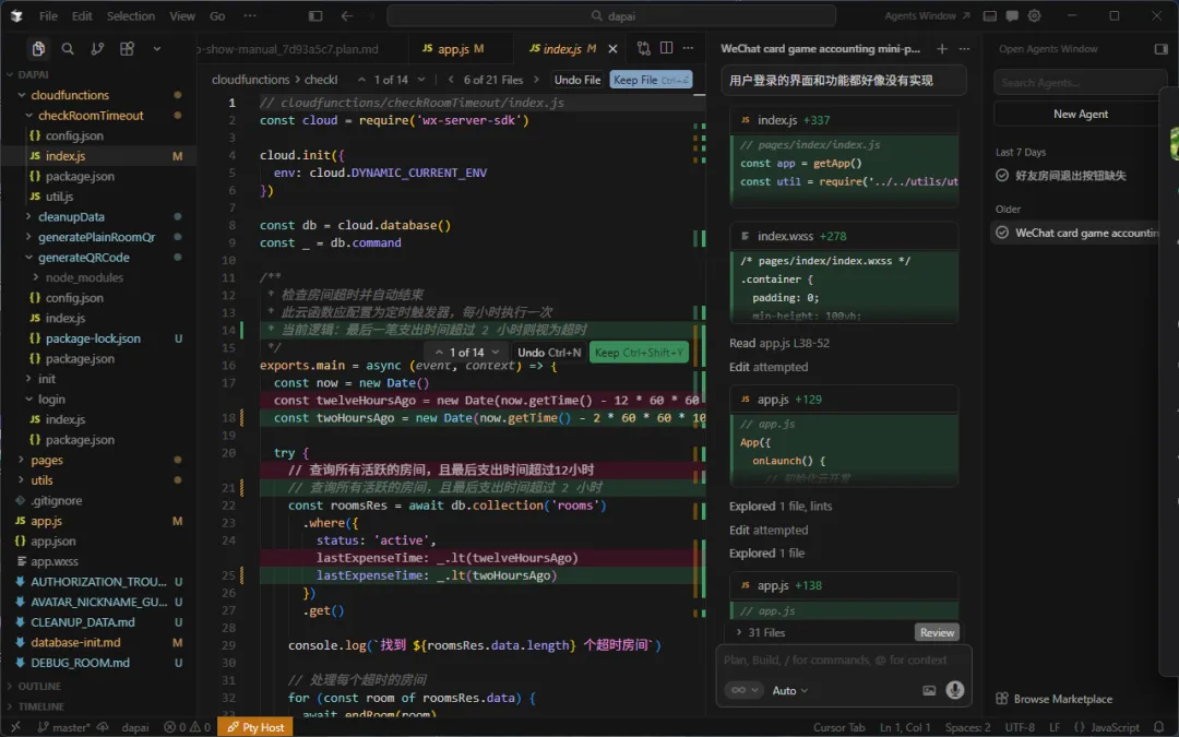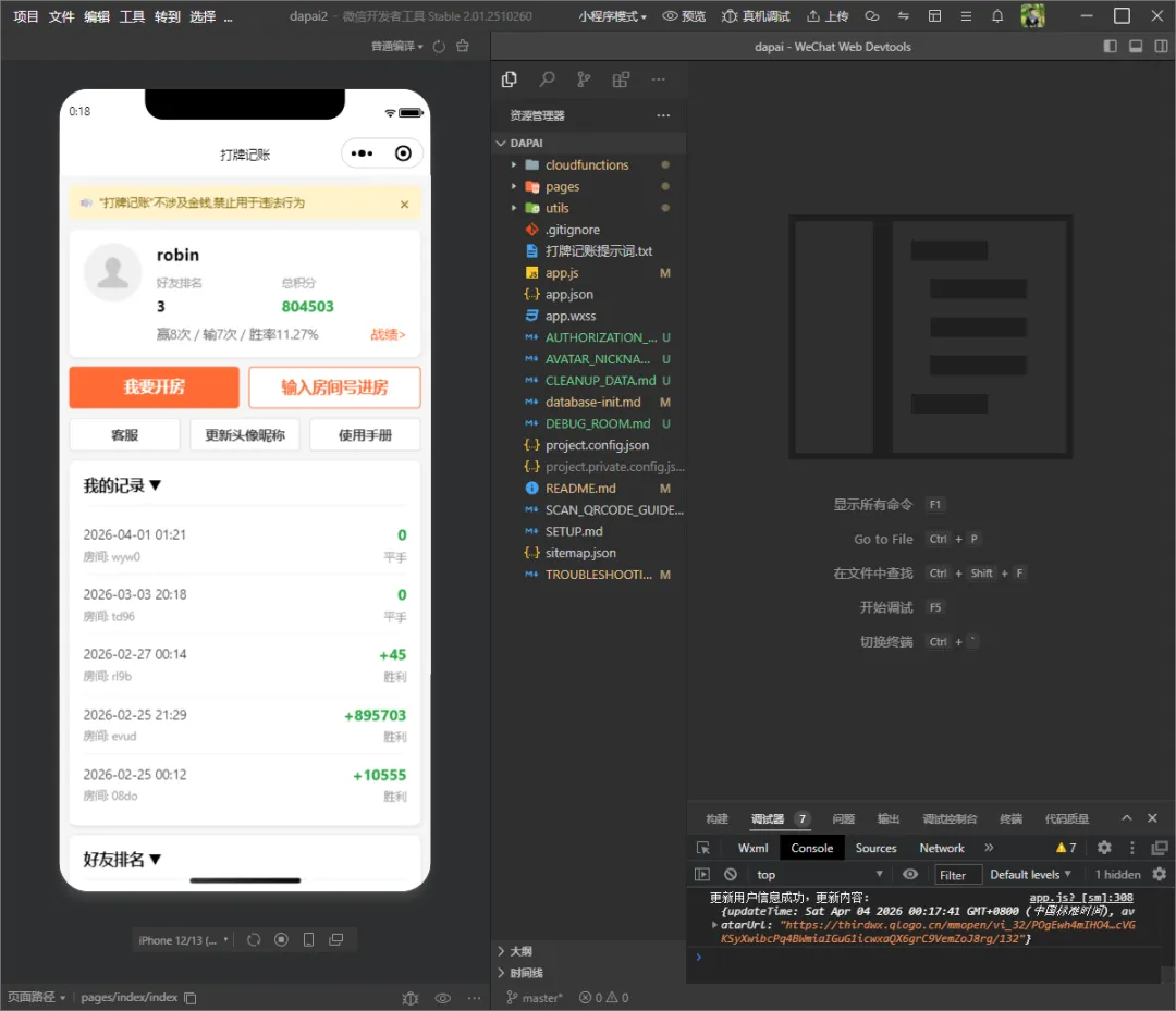 跑真机测试,来回几次,幸好直接可以用cursor与微信开发者工具共享项目的目录及文件,只需要来回切换两个编程工具即可,省去太多麻烦。