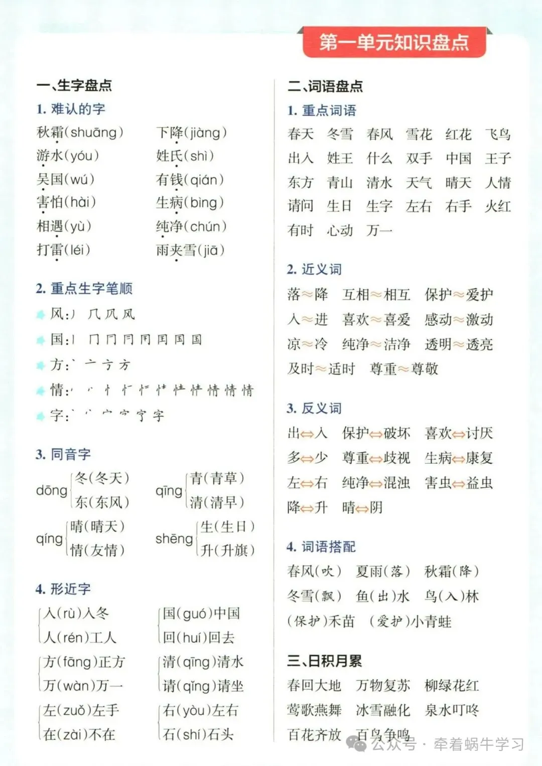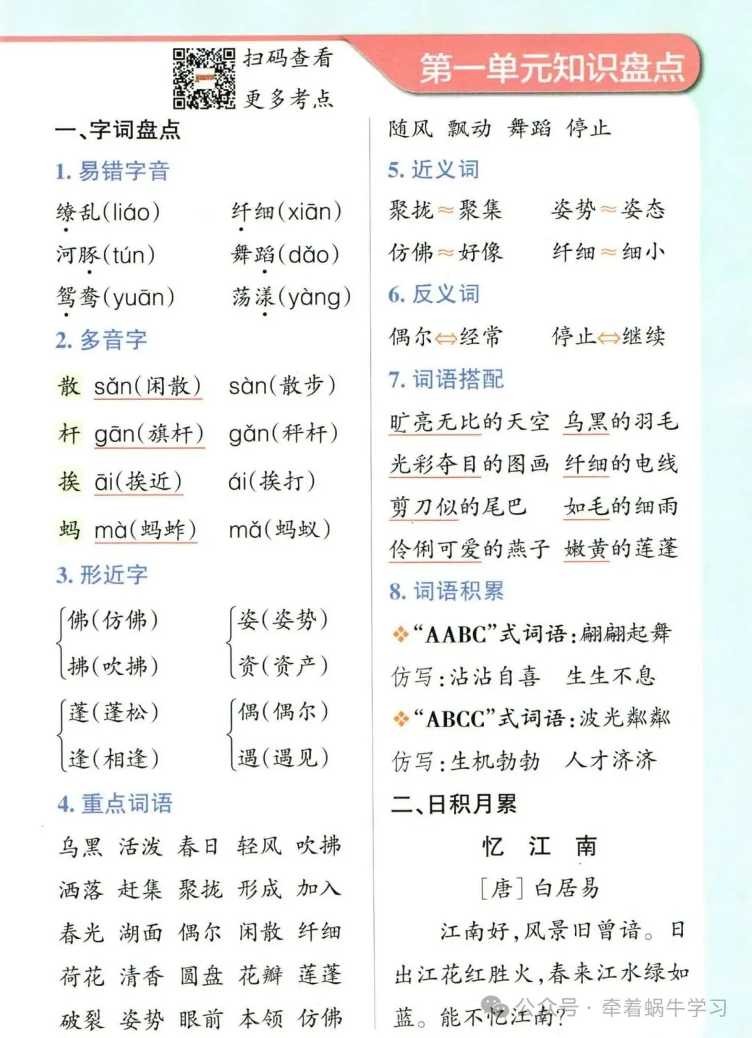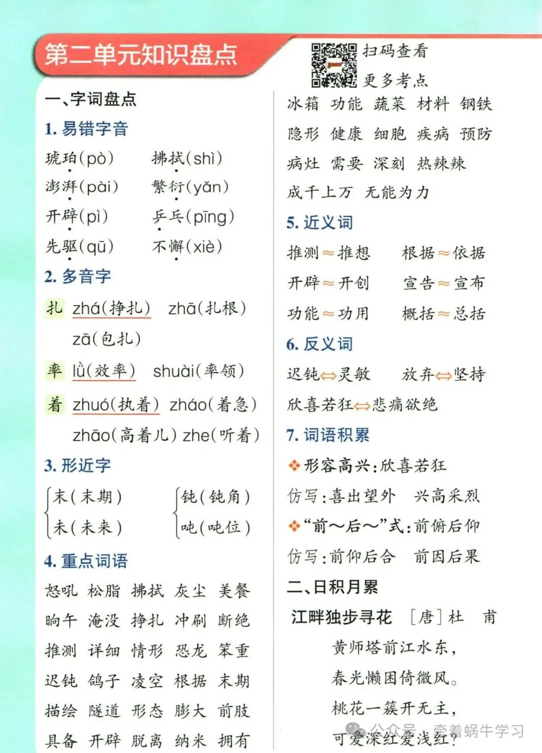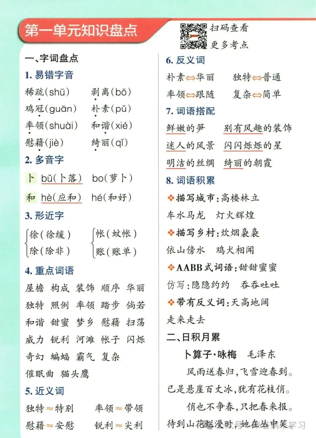 语文1-6年级(下册)《知识盘点》,因篇幅有限,资料不过多展示。文末有全册电子版领取方法,欢迎下载和打印。